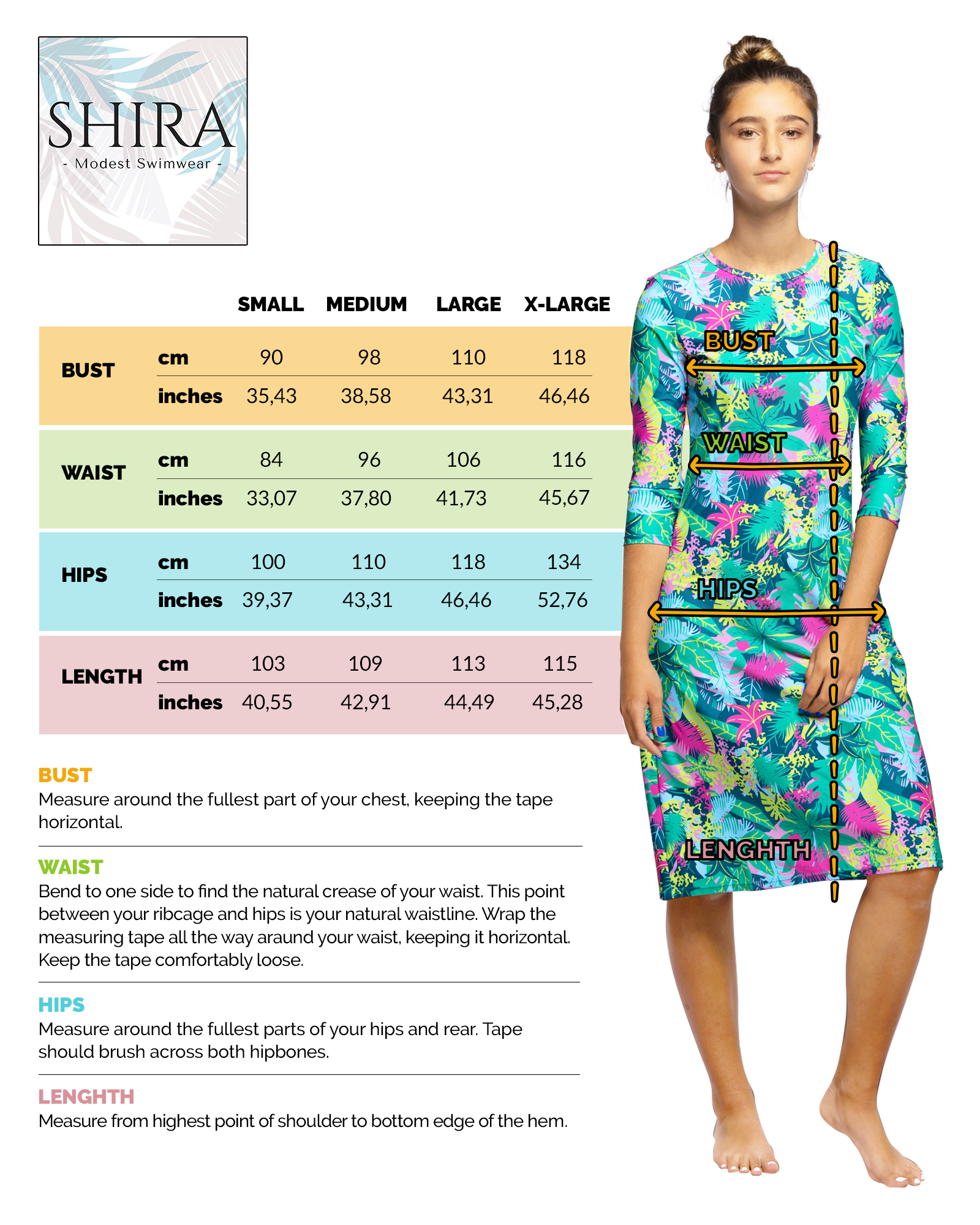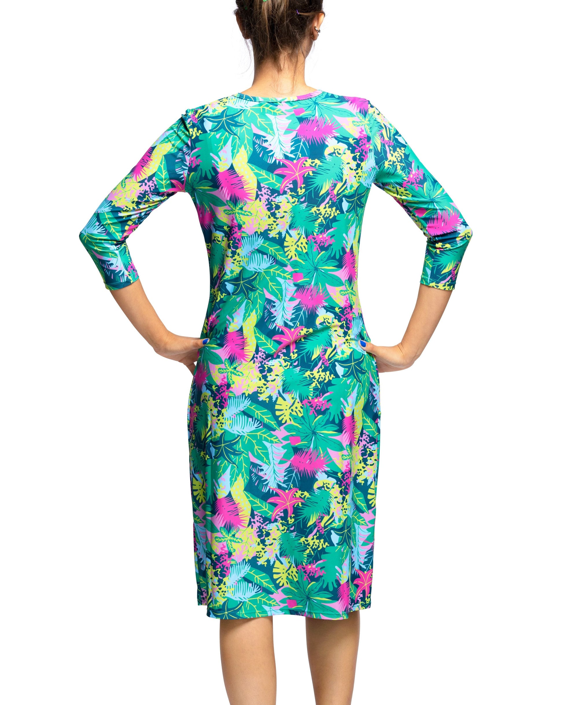 Woman Modest Tznius 3/4 Sleeves Athletic Swimdress Beach Cover up UPF 50+ Sun Protection (Amazonas Print )