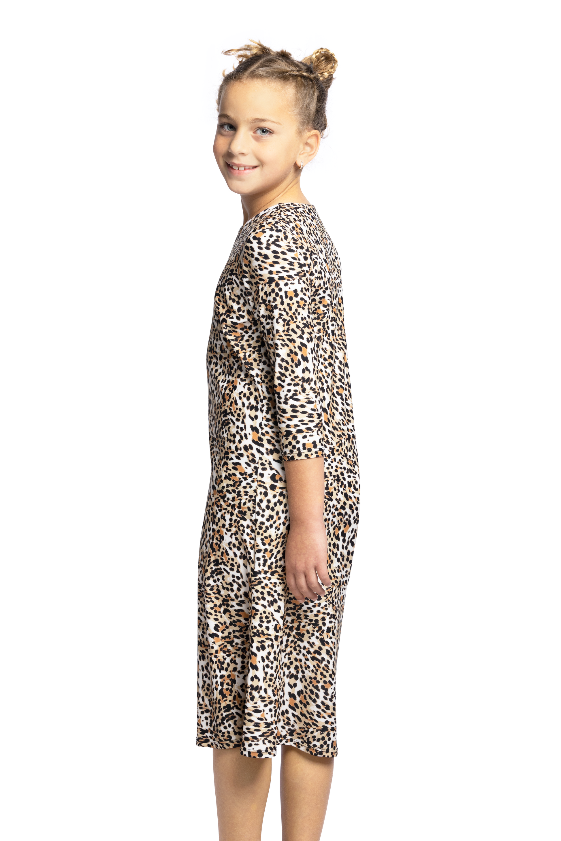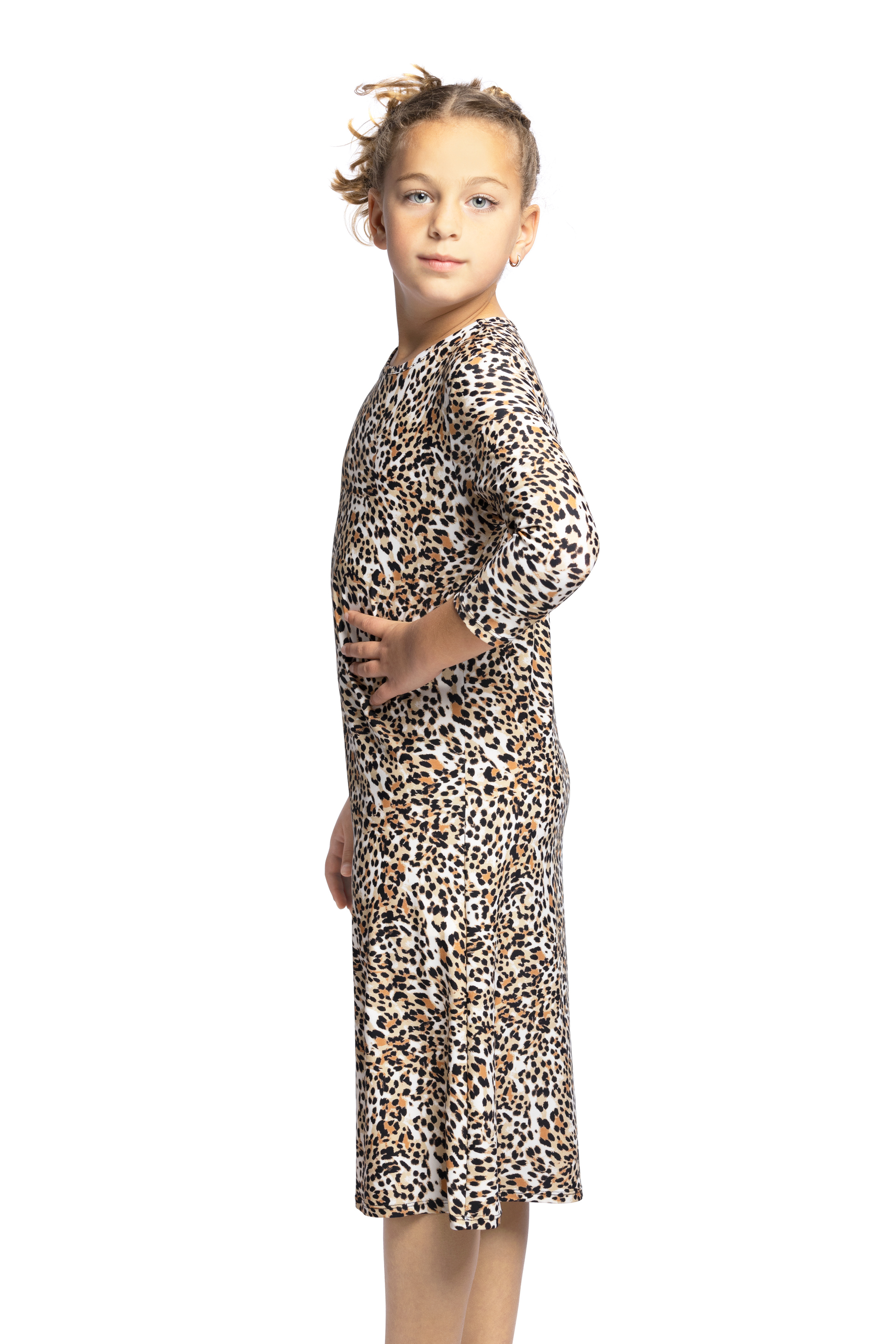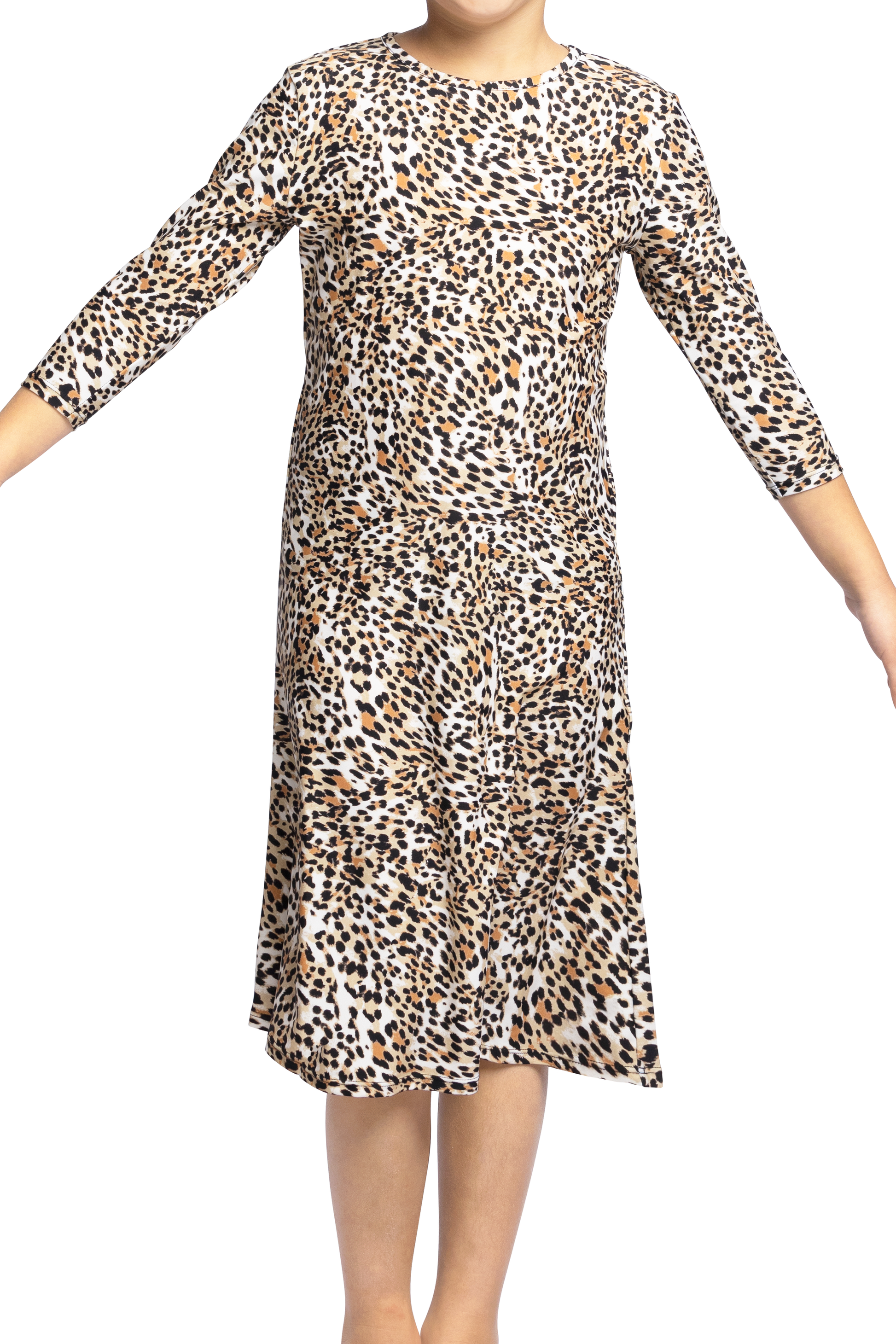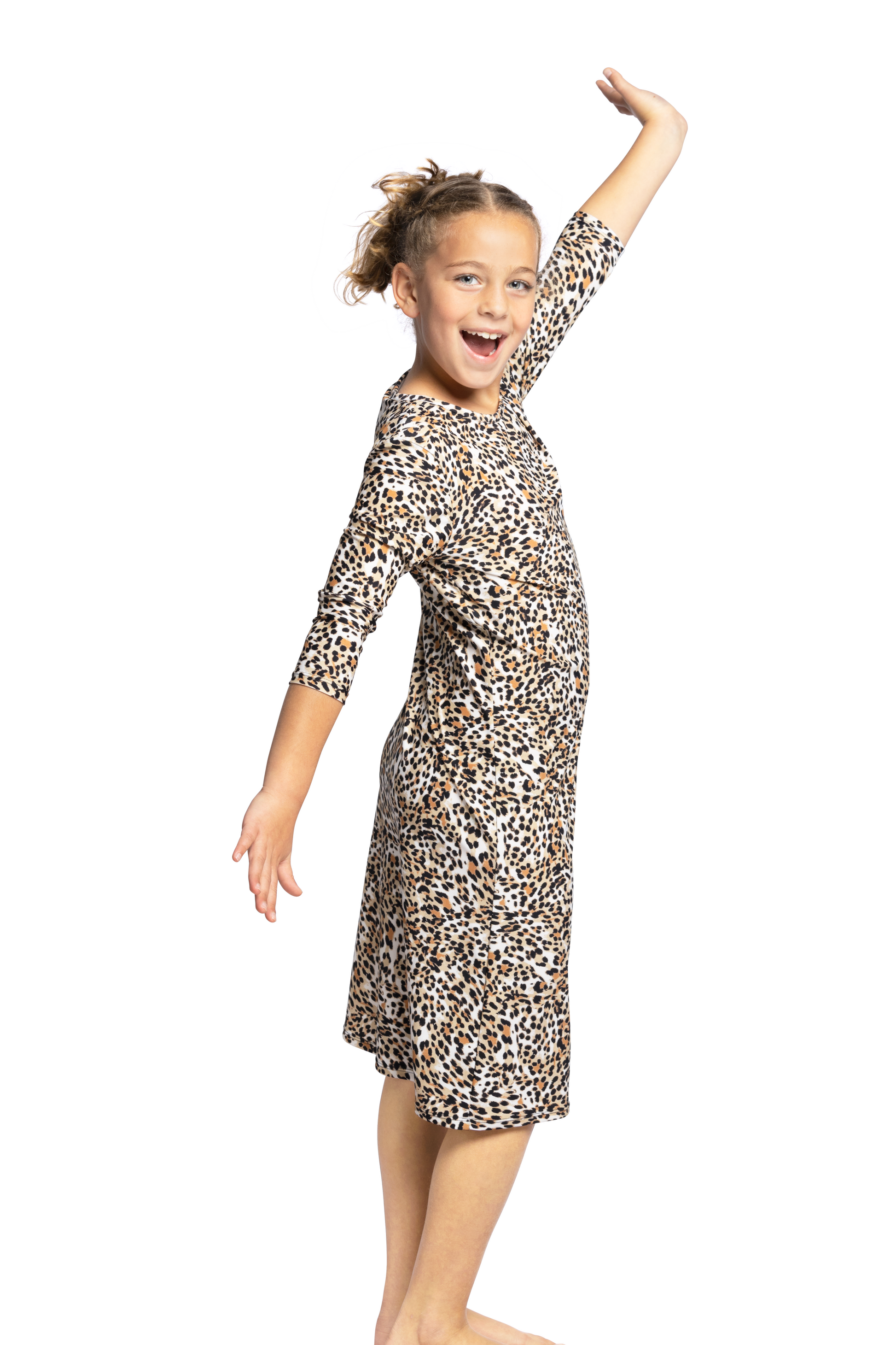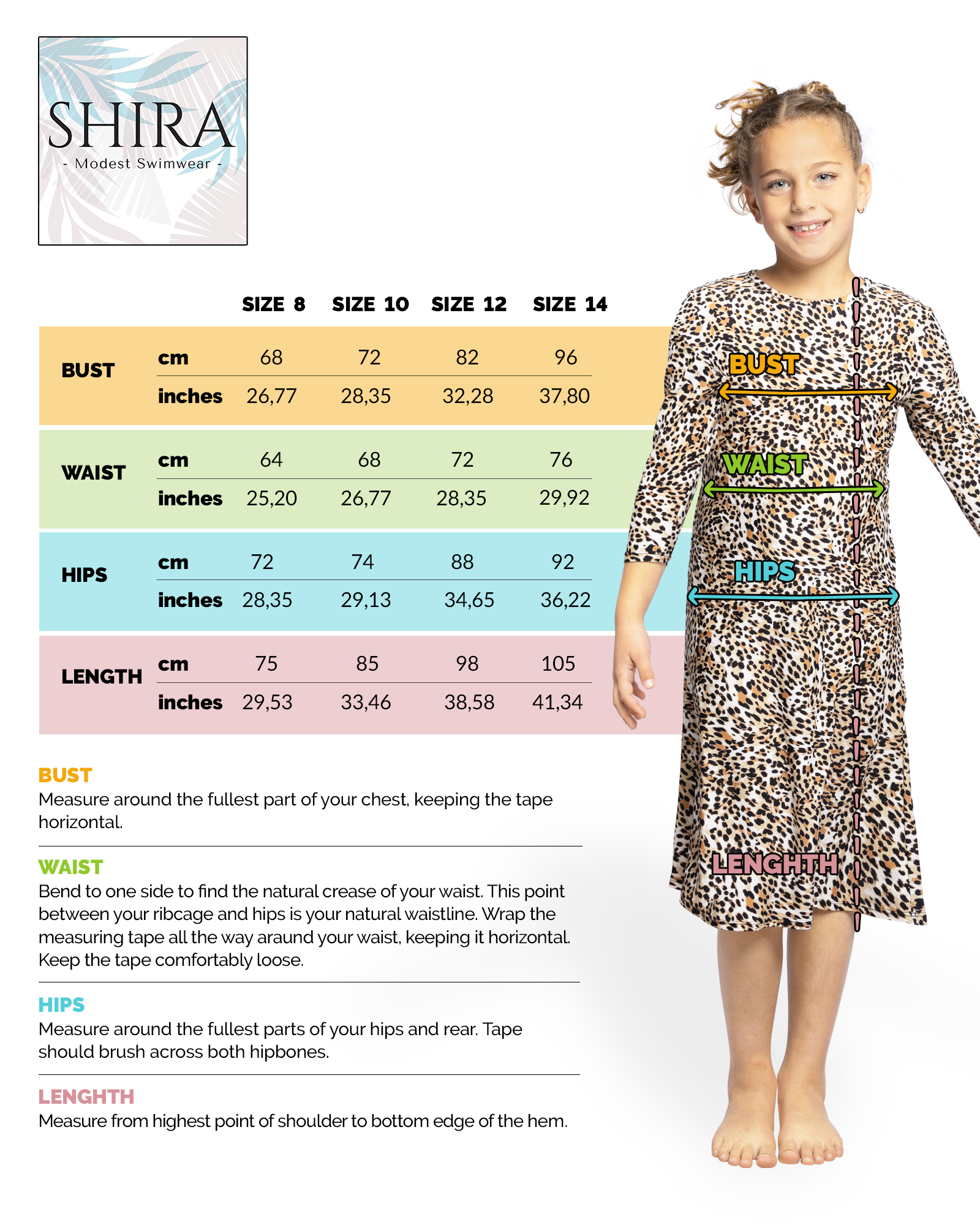 Girls Modest Tznius 3/4 Sleeve UPF 50+ Sun Protection Bathing Suit Swimdress (Animal Print )